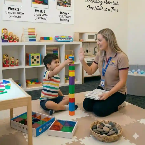 Through consistent therapy sessions, children develop communication, social, and daily living skills.
